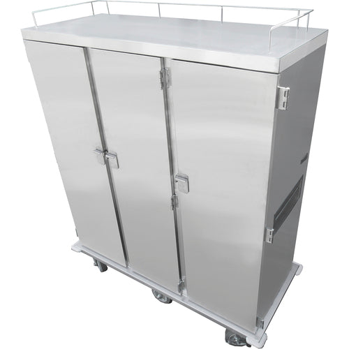 Tray Delivery Cart, insulated, heavy duty, (30) 15" x 20" or 14" x 18" tray capacity with 5" spacing (1 tray per slide), removable tray slides & (3) hinged doors, push handle, 18 gauge all welded stainless steel, brushed satin finish, continuous bumper, swivel casters