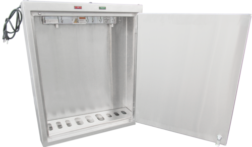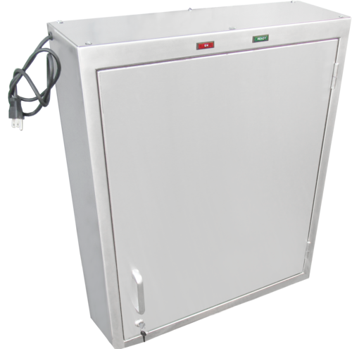 Sterilizer Cabinet, 18GA type 304 stainless steel, double pan door, removable rack, timer, latch & key, 120v, 15 amp
