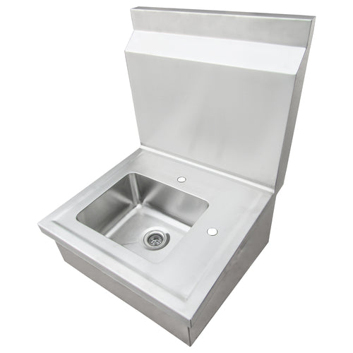 WS Hand Sink, wall mounted, 19-1/4"W x 20-1/2"D x 29-1/4"H overall size, single hole deck mount, 18-1/4"H backsplash, 11-5/8"W x 9-3/8" front-to-back x 6-3/4" deep bowl, non-drip marine edges, front apron with rear flange & "Z" strip, 16/304 stainless steel construction, NSF, Made in USA