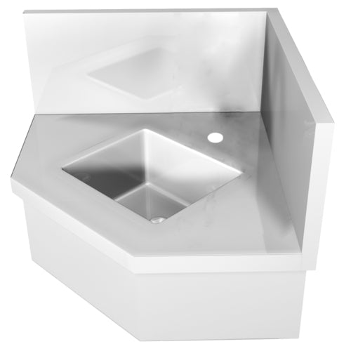 WS Corner Hand Sink, wall mounted, 16/304 stainless steel, integrated backsplash, non-drip marine edges, 14 gauge stainless steel front apron with rear flange & "Z" strip, 1-hole deck, Made in USA