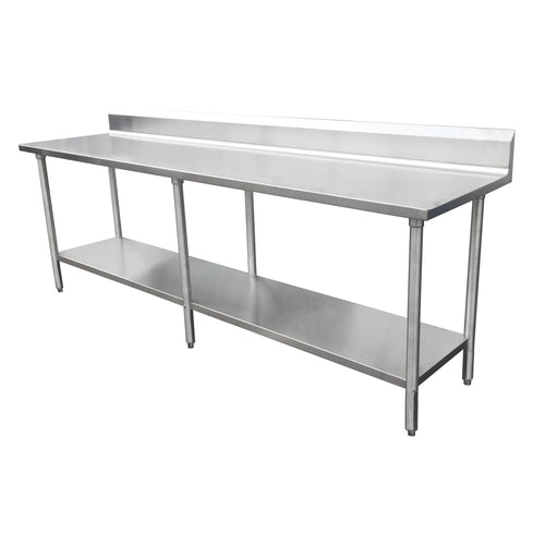 Work Table, 24"W x 30"D, 16/304 stainless steel top with 5" backsplash, stainless steel undershelf & legs