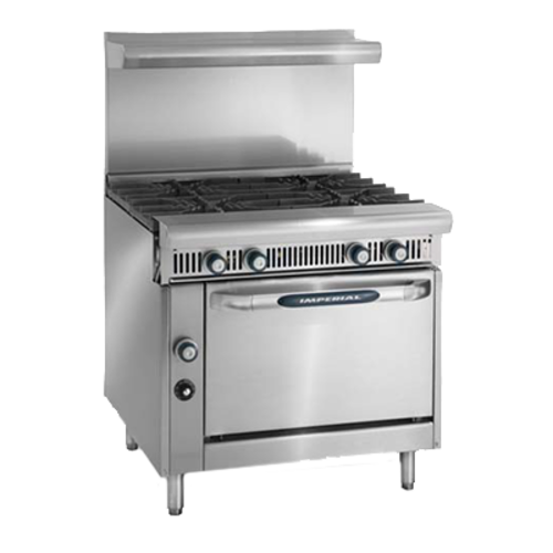 Spec Series Heavy Duty Range, gas, 36"W, (4) open burners, cast iron "S" grates (standard), convection oven, 1/2 HP blower motor, porcelain interior, (3) chrome racks, manual controls, removable crumb tray, stainless steel front, sides, 5"D landing ledge, backguard & kick plate, 6" legs with adjustable feet, 195,000 BTU, 57kW, cETLus, NSF