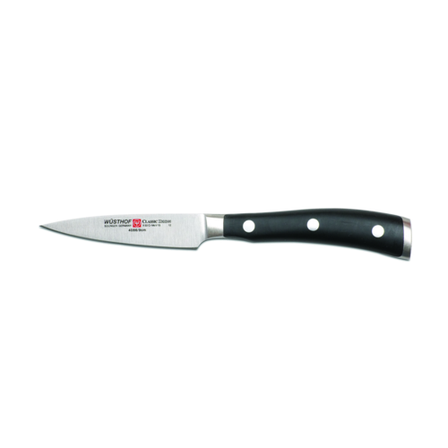 Wusthof Ikon Paring Knife, 3-1/2", spear point, forged, high carbon steel, plastic black, handle, Made in Germany