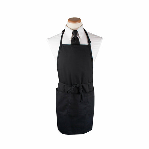 Ritz® Bib Apron, 26" x 31" extra long, 3 front pockets and pen pocket with seamless bottoms, made with DuraSure® polyester, fade and water resistant, adjustable neck strap, reinforced bias trim, black (must be purchased in case quantities)