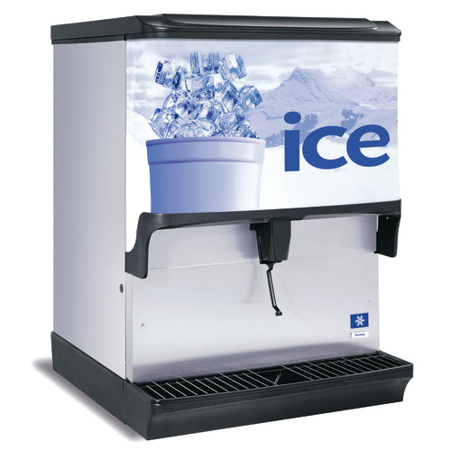 Ice Dispenser, countertop, 30"W x 31-1/8"D x 34-7/8"H, 200 lb. ice storage capacity, Rocking Chute™ ice dispensing, lever activated, includes: lighted merchandiser with "ice" graphics, leg kit and drain kit, stainless steel exterior, cUL, UL, NSF (apply Multiplex discount to this item)