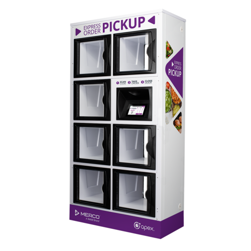 OrderHQ™ Front-Load Floor Locker, ambient, (7) 13.3"w x 11.3"h x 16.25"d compartments with customer/crew member touchscreen UI on front. Touchscreen UI has QR/Bar Code scanner. System powered by exclusive Apex software providing real-time order pickup and behavioral data; subscription required. Each compartment is equipped with a camera sensor and customizable LED lighting, automatic door open / manual close, (2) Ethernet ports, powder-coated galvannealed steel construction with polycarbonate doors, white or black cabinet color, black door frame color, custom colors available for extra fee, custom wraps/decals available for extra fee, 100-240VAC/50-60Hz/4A, NEMA 5-15P plub, cUL, CE, cETLus, ETL Sanitation, Made in USA Model Files
