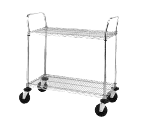 SP Heavy Duty Utility Cart, standard unit, 48"W x 24"D x 39"H, (2) wire shelves, plastic split sleeves (2) one-piece handles, donut bumpers & 5" resilient rubber casters, stainless finish, NSF