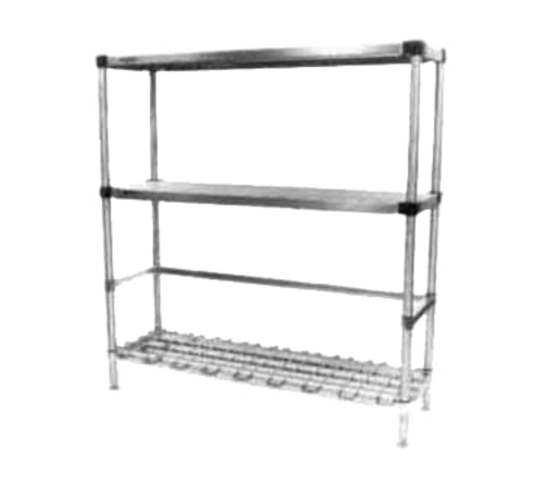 HD Super™ Beer-Keg Handling Rack, 42"W x 18"D x 64-1/8"H, (1) dunnage shelf & (2) solid shelves, (2) keg capacity, split-sleeve assemble device, foot plate, chrome plated finish
