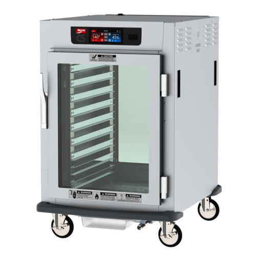 C5™ 9 Series Controlled Humidity Heated Holding and Proofing Cabinet with 6.8" touch-screen controls, mobile, 1/2 height, pass thru, (2) glass doors, lip load slides, capacity (8) 18" x 26" pans, 3" O.C., stainless steel, 5" casters, polymer bumper & drip trough combination, 120v/60/1-ph, 1440 watts, 12 amps, NEMA 5-15P, cULus, NSF, Made in USA