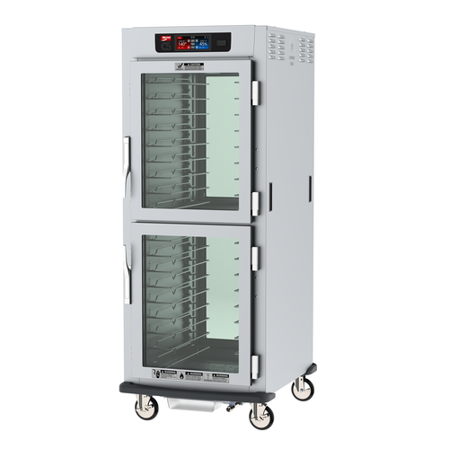 C5™ 9 Series Controlled Humidity Heated Holding and Proofing Cabinet with 6.8" touch-screen controls, mobile, full height, pass thru, (2) glass dutch doors, universal wire slides, capacity (17) 18" x 26" or (34) 12" x 20" x 2-1/2" pans, 3" O.C. (adjustable on 1-1/2" increments), stainless steel, 5" casters, polymer bumper & drip trough combination, 120v/60/1-ph, 2000 watts, 16.7 amps, NEMA 5-20P, cULus, NSF, Made in USA
