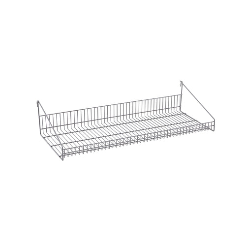 SmartWall Grid Shelf, 36"W x 14"D, with retaining edge, Metroseal Gray epoxy-coated corrosion-resistant finish with Microban® antimicrobial protection, NSF