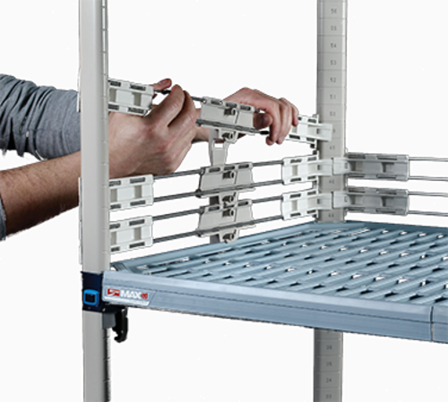 MetroMax® Q Stackable Shelf Ledge, 21"W x 2"H, side, snaps on, polymer & stainless steel, NSF