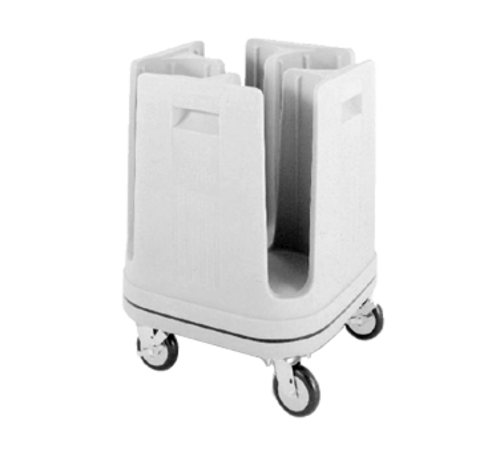 Poker Chip Dish Dolly, 24-1/16"W x 24-1/16"D x 31-15/16"H, non-adjustable, (360-540) dish capacity: size 5-5/8", (9) columns (approximately 40 dishes per column), 2-handed access, recessed handles, 5"Dia. swivel casters (2 with brakes) with neoprene wheels, chip-resistant polymer shell with Microban® antimicrobial protection, aesthetic blue, vinyl dust/water splash cover, NSF