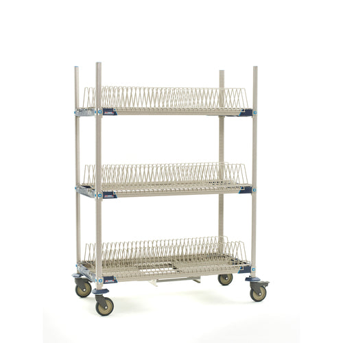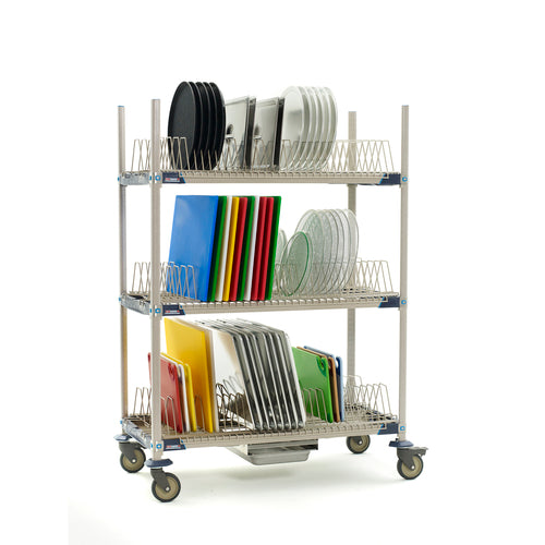 MetroMax® i Mobile Drying Rack Unit with Drip Tray, 48"W x 24"D x 68"H, 3-tier, for trays/cutting boards/sheet pans, includes: (3) open shelf frames, (4) 63" mobile posts, (3) cutting board/tray drying racks, (1) adjustable drip tray, (4) polymer swivel casters (2 with brakes), built in Microban® antimicrobial product protection, NSF