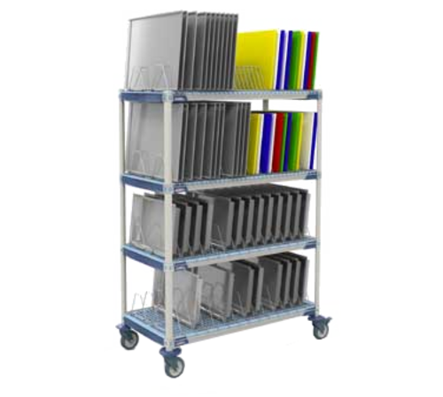 MetroMax® i Mobile Drying Rack Unit, 48"W x 24"D x 68"H, 4-tier, includes: (4) shelves, (4) 63" mobile posts, (2) cutting board/tray drying racks, (2) pan racks, (4) polymer swivel casters (2 with brakes), built in Microban® antimicrobial product protection, NSF