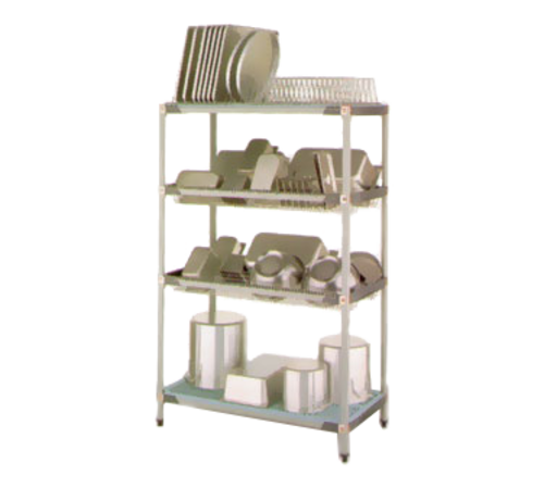 MetroMax® i Stationary Drying Rack Unit, 48"W x 24"D x 74", 4-tier, includes: (2) shelves, (2) open shelf frames, (4) 74" posts, (2) drop-ins & (1) cutting board/tray drying rack, built in Microban® antimicrobial product protection, NSF