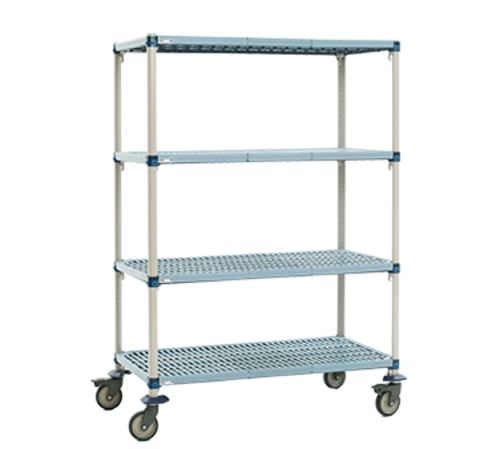 MetroMax® Q Mobile Shelving Unit, 36"W x 18"D x 67-5/16"H, (4) open grid shelves with eopxy coated steel frames & removable polymer shelf mats, (4) polymer posts, Microban antimicrobial product protection, (4) swivel 5" casters with polyurethane treads (2 braked), Microban antimicrobial product protection, KD, NSF