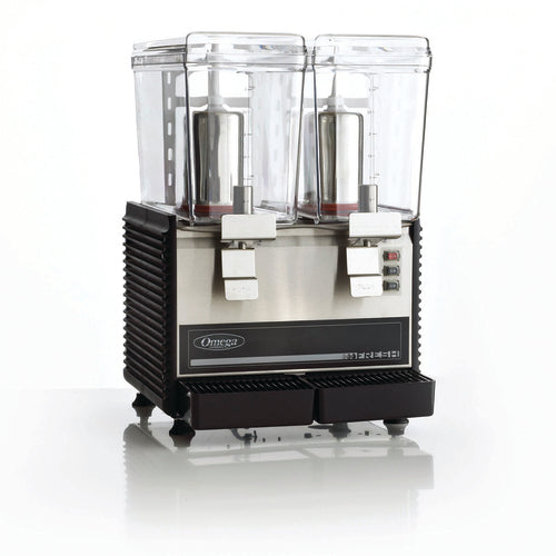 Omega Drink Dispenser, compact design, (2) 3 gallon polycarbonate container, extra-large cooling pump & evaporator, rotary system, removable drip tray, non-drip dispensing mechanism, stainless steel cylinder, frame & front panel, 1/3 HP, 120v/60/1-ph, 420 watts, cETLus