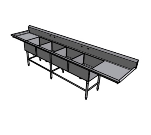 Sink, four compartment, 30" left & right drainboards, 20" front-to-back x 20"W x 12" deep sink bowls, 16/304 stainless steel construction, (C10) 2"D x 10"H backsplash, 220° sanitary rolled rim, NSF