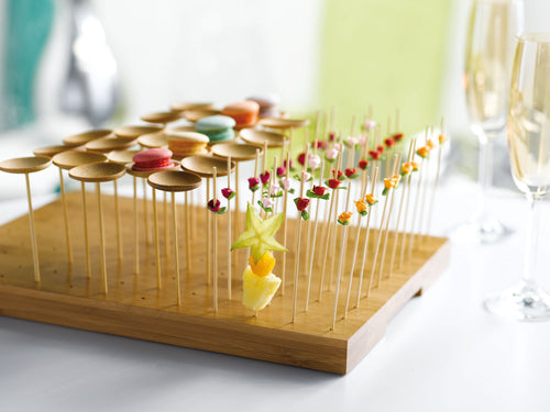Thani Dish Skewer, 1.6" dia. x 3.9"H, mini, round, grease resistant, freezer safe, reusable, compostable, biodegradable, bamboo, natural, case quantity = 144 (6 x 24 pcs)