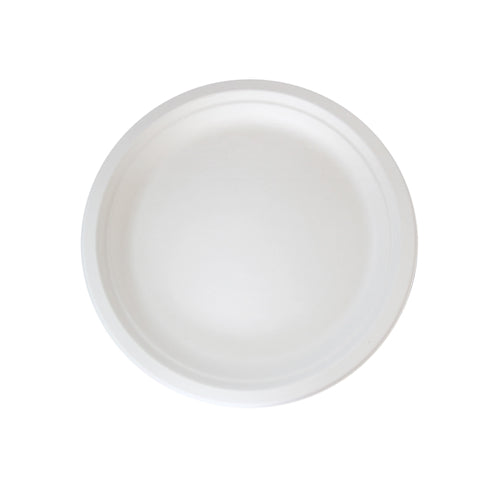 Plate, 7" dia., round, microwavable, grease resistant, biodegradable, sugarcane, white, case quantity = 1000 (8 x 125 pcs)