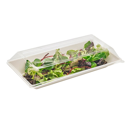 "Eco-Design" Plate, 10.25"L x 5.12"W x 1.1"H, rectangular, microwavable, grease resistant, freezer safe, reusable, compostable, biodegradable, sugarcane, white, case quantity = 500 (10 x 50 pcs)