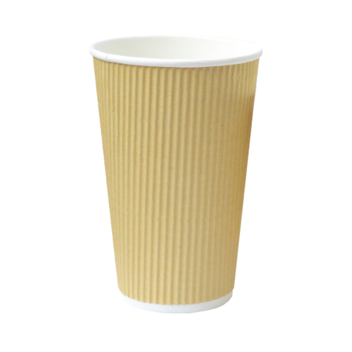 Grab & Go Coffee Cup, 16 oz., 3.5" dia., x 5.4"H, rippled exterior, double wall, freezer safe, recyclable, paper, beige, case quantity = 500 (20 x 25 pcs)