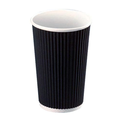 Grab & Go Coffee Cup, 16 oz., 3.5" dia. x 5.4"H, rippled exterior, double wall, freezer safe, recyclable, paper, black, case quantity = 500 (25 each per pack, 20 packs per case)