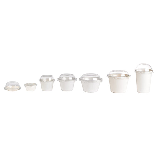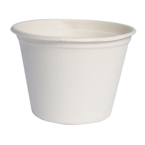 Buckaty Cup, 4.7 oz., 2.9" dia., mini, round, microwavable, leak & grease proof, freezer safe, recyclable, compostable, biodegradable, sugarcane, white, case quantity = 1000