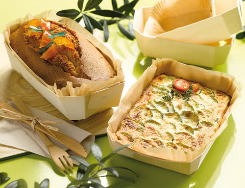 Lovely Baking Mold, 4 oz., top: 3.7" x 2.6" x 1.5" base: 1.9" x 1.5", includes Kosher certified baking liner, oven proof up to 440°F/220°C, microwavable, grease resistant, compostable, wood, natural, case quantity = 300 (10 x 30 pcs)