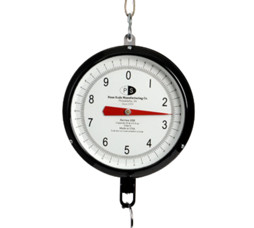 Hanging Scale, 8" dial, 20 lb. x 1/2 oz. capacity, removable galvanized steel vegetable scoop (20 x 14 x 7) with chain, steel construction with bronze bearings, Made in USA