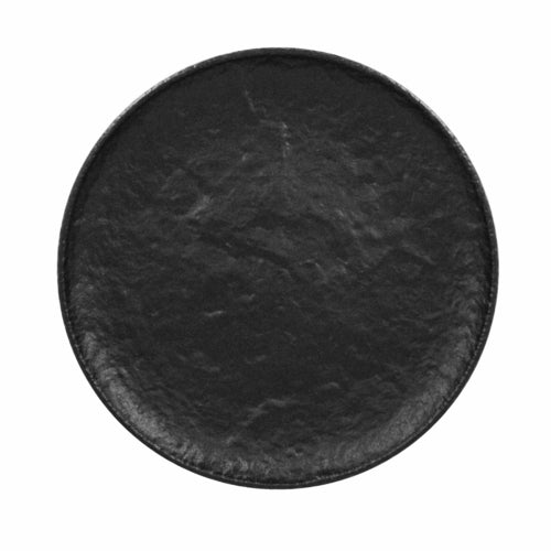 Roks Plate, 11" dia. x 1"H, round, flat, coupe, fridge/freezer/oven/microwave/dishwasher safe, porcelain, Epic Collection, black