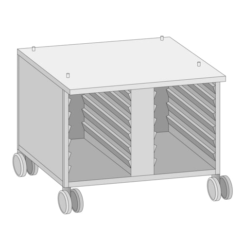 US III Mobile Oven Stand, 14 supporting rails, side panels, rear panel and cover, height 26-3/8", stainless steel construction, for SCC 61/CMP 101 series (special order item)