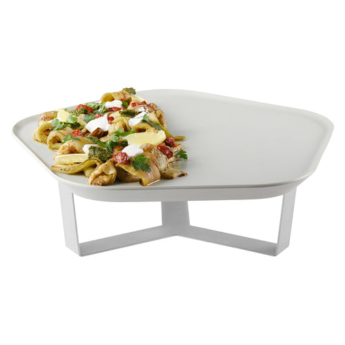 Forme’ Tray & Riser Set, 12-1/4" x 12-1/4" x 4", polygon, light grey melamine tray, stainless steel riser (to be discontinued, contact factory for availability)