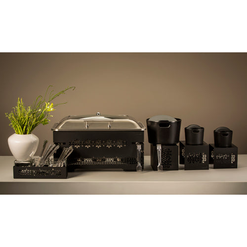 Mosaic Multi-Chef™ Warmer, 21-5/8" x 13-5/8" x 10", rectangular, includes 2-height reversible burner stand & (3) fuel holders, stamped steel with black matte finish, Made in USA