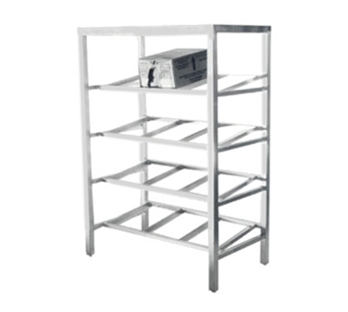 Syrup Bag-In-Box Storage Rack, stationary, 57-1/2" high, (12) 11" x 15-3/8" x 8"H boxes capacity, heavy duty tubular/channel uprites, solid top, sloping frames, all welded aluminum construction, adjustable feet, NSF
