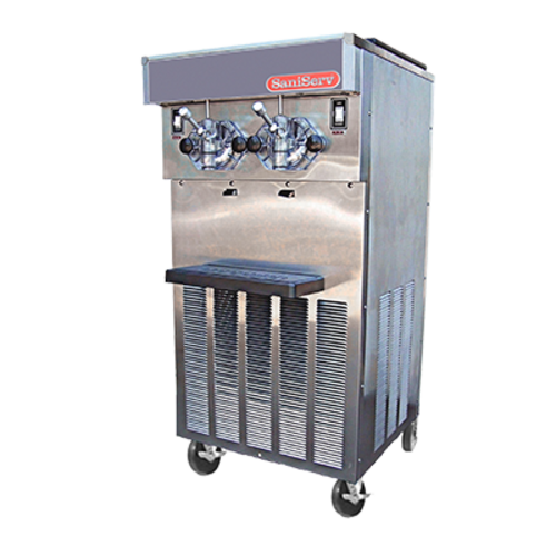 Shake Dispenser, floor model, air or water cooled, self-contained refrigeration, 2 heads, 20 qt. mix capacity(per side), welded steel frame, stainless steel exterior, electronic consistency control, mix out light, (2) 1 HP dasher, (2) 2 HP compressor, casters included, UL, NSF & cUL