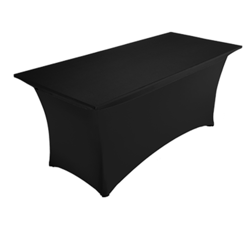 Table Cover, fits 8' x 24" rectangular banquet table, tailored fit, true 4-way stretch fabric, flame retardant, machine washable/dryable, patented polycaster boots, heavy duty 80% nylon/20% spandex blend