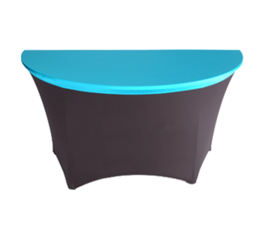 Table Cover, fits 72" half round table, tailored fit, true 4-way stretch fabric, flame retardant, machine washable/dryable, patented polycaster boots, heavy duty 80% nylon/20% spandex blend