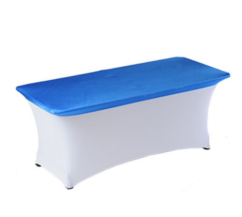 Table Cover Cap, fits 6' x 18" rectangular table, covers table surface only, tailored fit, true 4-way stretch fabric, flame retardant, machine washable/dryable, patented polycaster boots, heavy duty 80% nylon/20% spandex blend