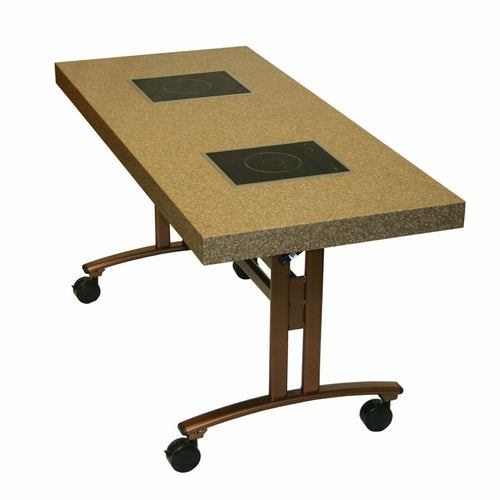 Sophisticate Plus Mobile Folding Buffet Table, 32"W x 72"L x 36"H, (2) induction warming unit, granite top, 5-settings, 16 ga. oval tubular frame, (4) 4" non marring casters, powder coat finish, NSF (5% PRODUCT SURCHARGE - SEE NOTES UNDER DETAILS)