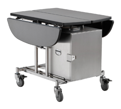 Royal Room Service Trolley, 40-1/4"L x 38-3/4"D x 29-1/2"H, oblong, foldable, (4) 5" swivel casters with brakes, stainless steel frame, t-mold 3 mm impact edge finish, (hot food warmer - 1A11811 sold separately)