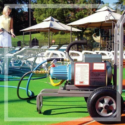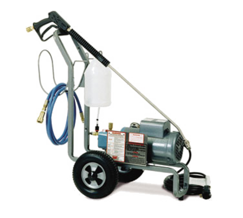 SMT-1100PE Portable Pressure Washer Cleaning System, 2.2gpm @ 1100psi, 115v, 2hp motor, 3 cylinder CAT plunger pump, adjustable chemical injector with metering knob, 35 ft. GFCI power cord (NEMA 5-15), 30 ft. steel-braided hi-pressure hose, 6 ft. inlet supply hose, hose hanger, chemical basket holds (1) 1-gallon bottle, 36" dual nozzle spray gun assembly, pressure gauge, Flo-Thru quick disconnects, 1100-psi max., (2) 10" semi-pneumatic tires, UL, ETL, cETLus, CE