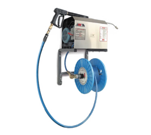 SMT-1100W Pressure Washer Cleaning System, wall mount, 2.2gpm @ 1100psi, 115v, 2hp motor, 3-cylinder CAT plunger pump, adjustable chemical injector with metering knob, 50 ft. steel braided hi-pressure hose, manual rewind hose reel (SMT-200-RW), 6 ft. inlet supply hose, 36" dual nozzle spray gun assembly, Flo-Thru quick disconnects, pressure gauge, stainless steel cover & frame, (1) one-gallon chemical basket, 4 ft. GFCI power cord, UL, ETL, cETLus, CE