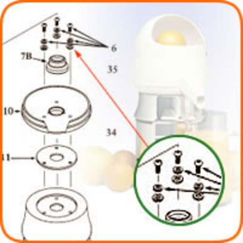 Bowl Support Assembly, includes: (1) screw, (1) spacer, (1) washer