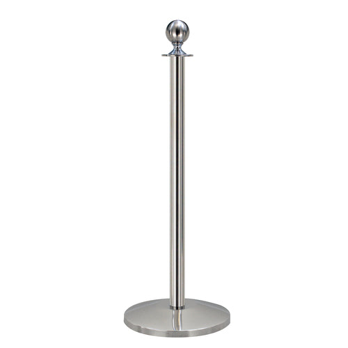 Lawrence® Sphere Post, 2" x 37"H, 5" dia. fixed base, for permanent applications, 4-way connectivity, rope not included, spherical top (does not accommodate top accessories), elegant design, metal construction, Category B finish