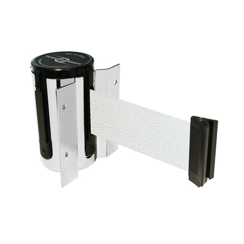 Tensabarrier® Heavy Duty Wall Unit, 13'L belt, for restricting areas without taking up floor space, SlowRetract™ braking mechanism, steel construction, Category A finish