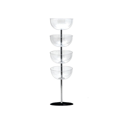 Merchandise Impulse Tower, 49"H, 360° access, includes (4) polycarbonate bowls, polished chrome post, gray plastic base (knocked down)