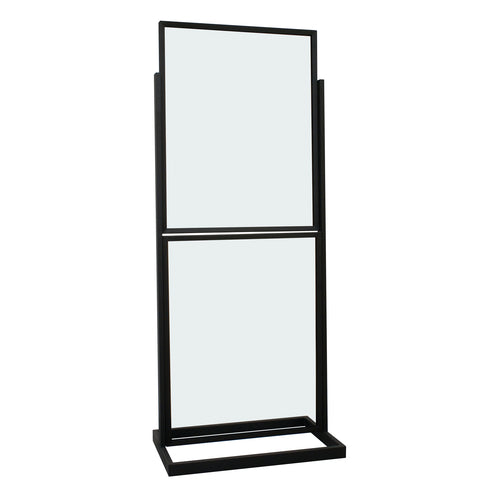 Poster Display Stand, (2) 22" x 28" vertical frames, 56"H post, 15" x 24" rectangular tubing base, heavy duty, weather resistant, for use in any environment, aluminum construction, black
