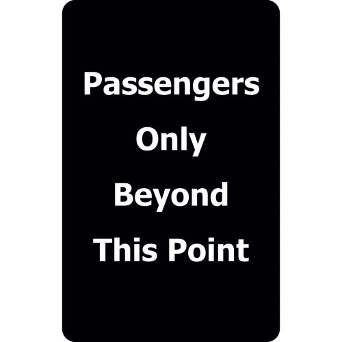 Sign, 22" x 28", 1/4" thick, vertical, single sided, "Passengers Only Beyond This Point", white letters, acrylic, specify color